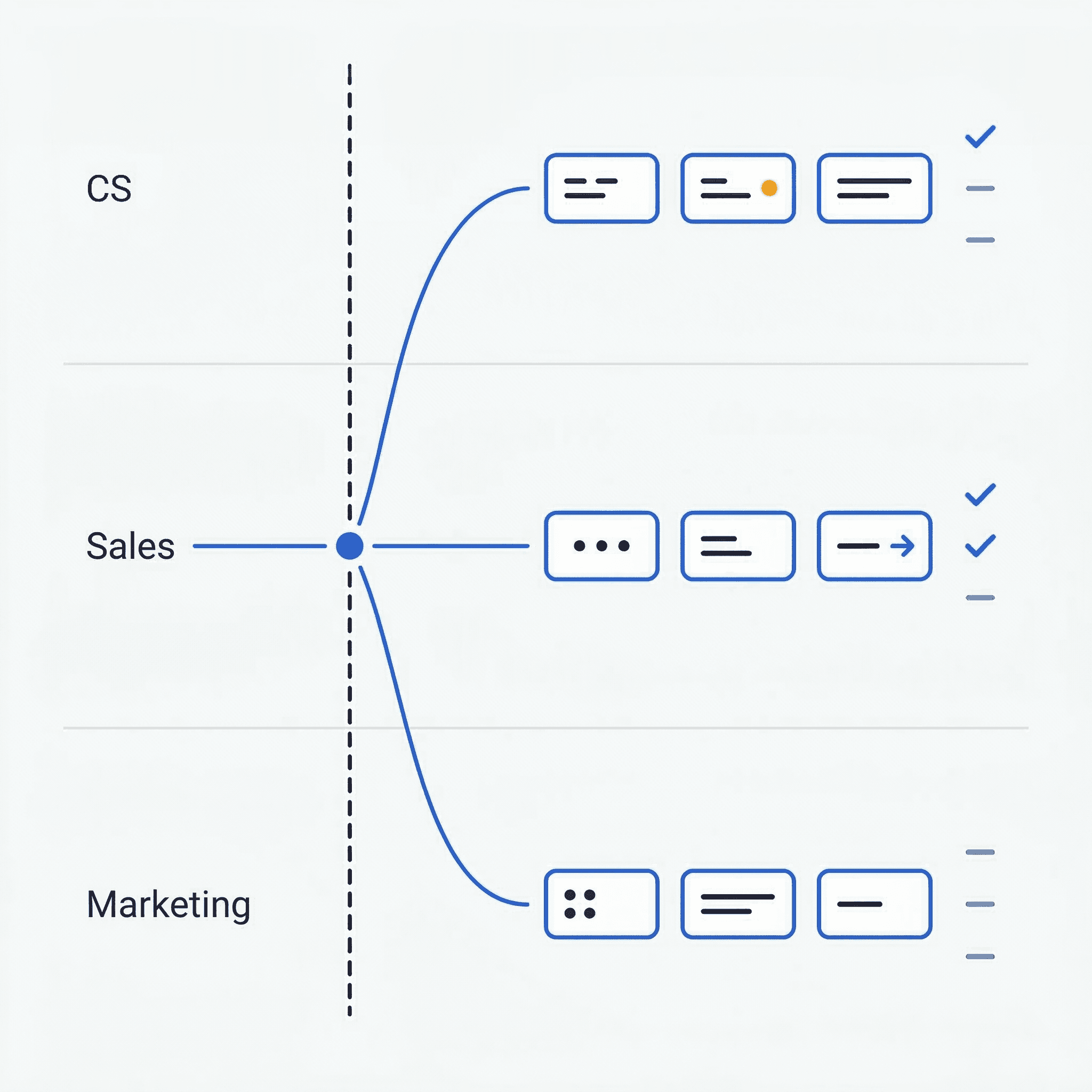 Each draft lands in the right person's queue, ready to review, edit, and send. No Slack chasing. No "can you follow up on that list I sent Monday." Your CS, Sales, and Marketing teams work from actions, not alerts.